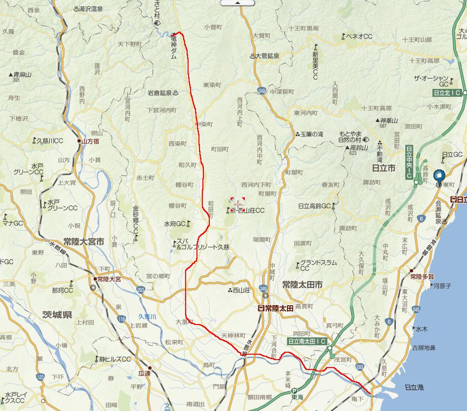 水府の竜神大吊橋まで片道40km(yahoo地図の赤線が道のり)2時間の予定です。