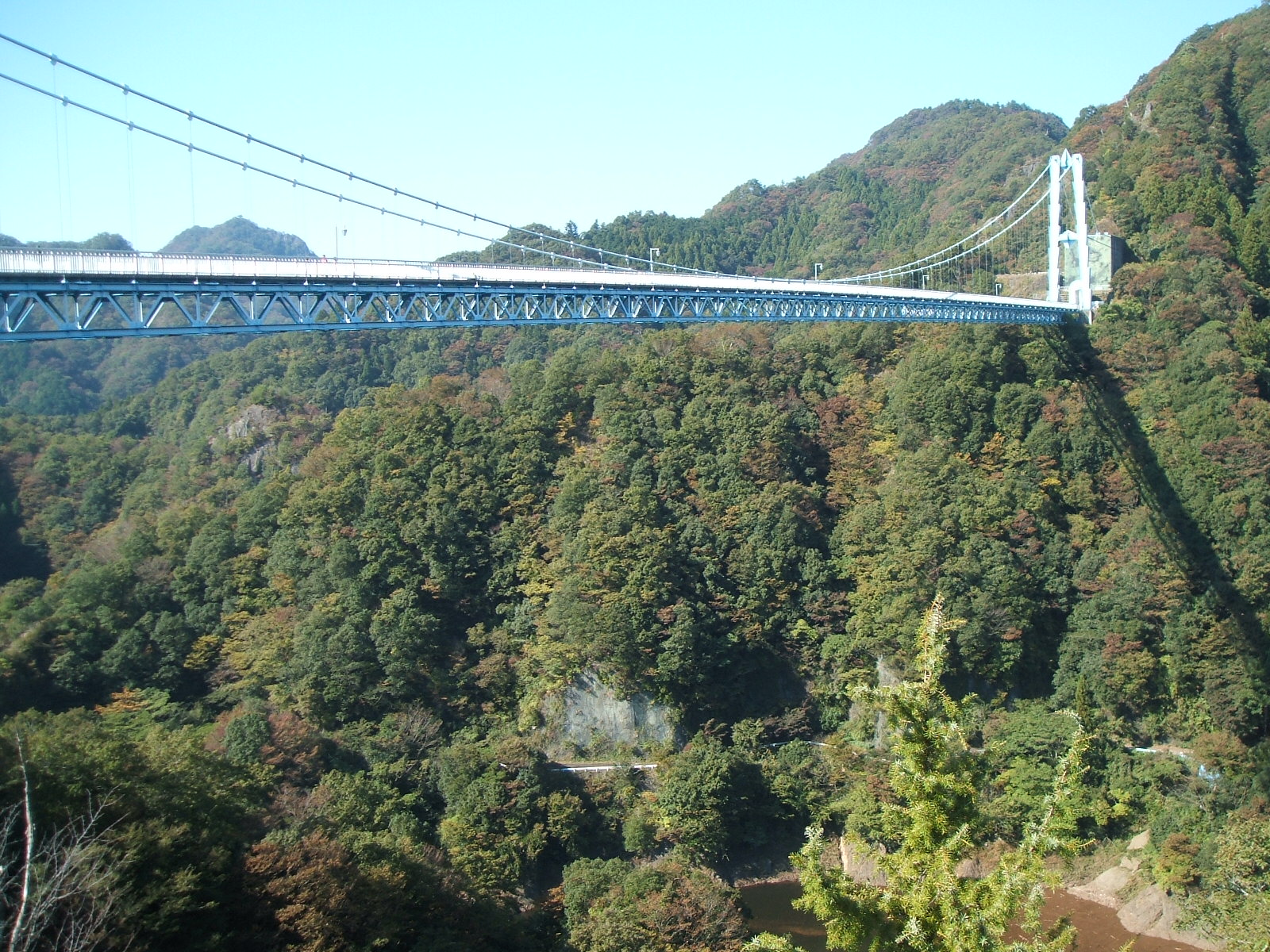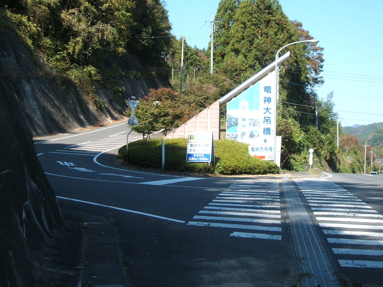 山の向こう側に竜神大吊橋の支柱の先端が見えた時、ほっとしました。