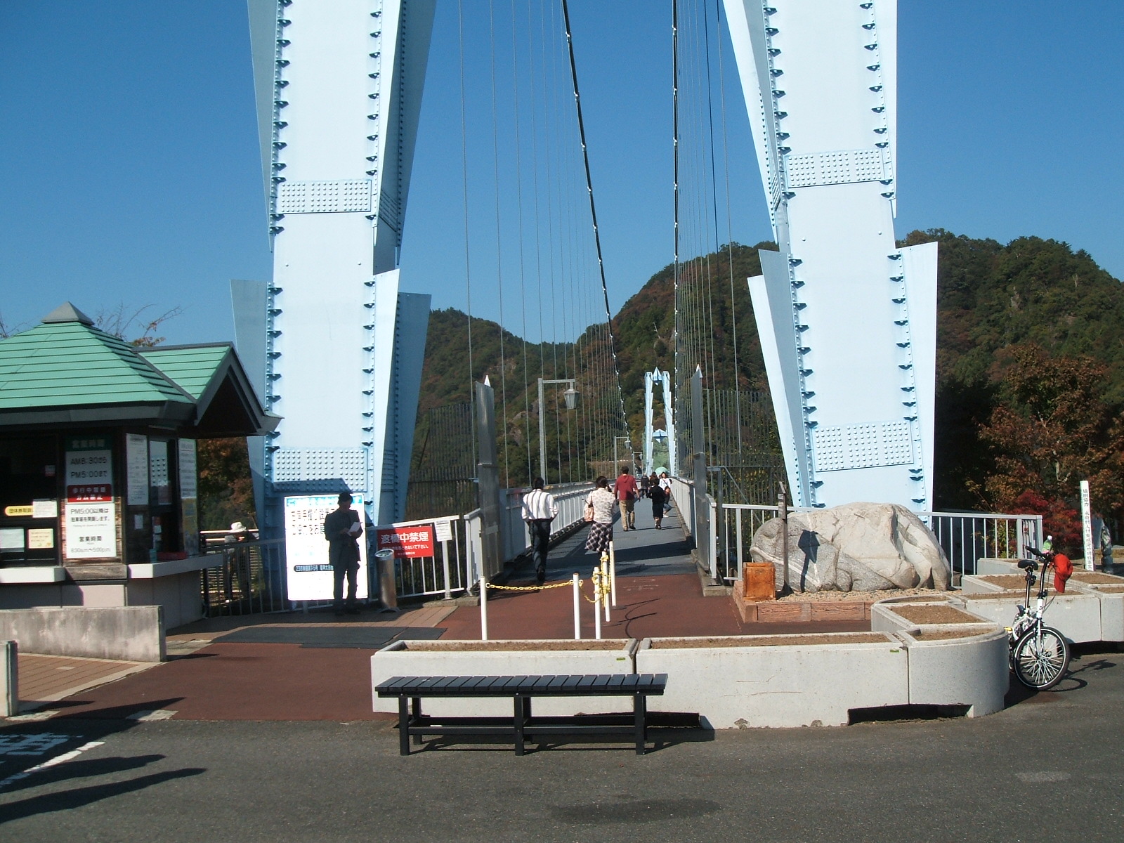 11時30分過ぎにやっと「竜神大吊橋」に到着しました。11月目前なのに天気が良く穏やかな気候に恵まれ、観光客も多く(観光バスも数台来ていました)来て良かったと思いました。