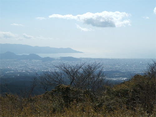 逆光で見づらいですが、伊東市を眺めて本当に初夏(写真では)の日差しの様子ですが、本当は肌寒い気候でした。