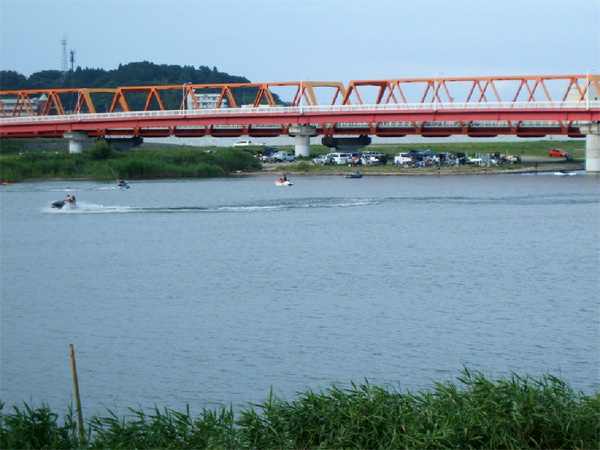 夏となれば、久慈川河口の赤橋(国道245号)近くでの水上バイクを楽しむ人やバーベキューをする人もたくさんいます。