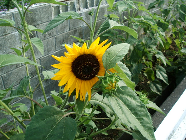 夏の定番「ひまわり」です。これは、久慈川の土手に咲く草花ではありませんが、鮮やかなひまわり顔をしていましたので、ちょっと撮影しました。