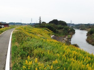 今の季節は川沿いの土手にセイタカアワダチソウが野草とはおもえないほど、黄色一色に土手を埋め尽くしており見事なものです。